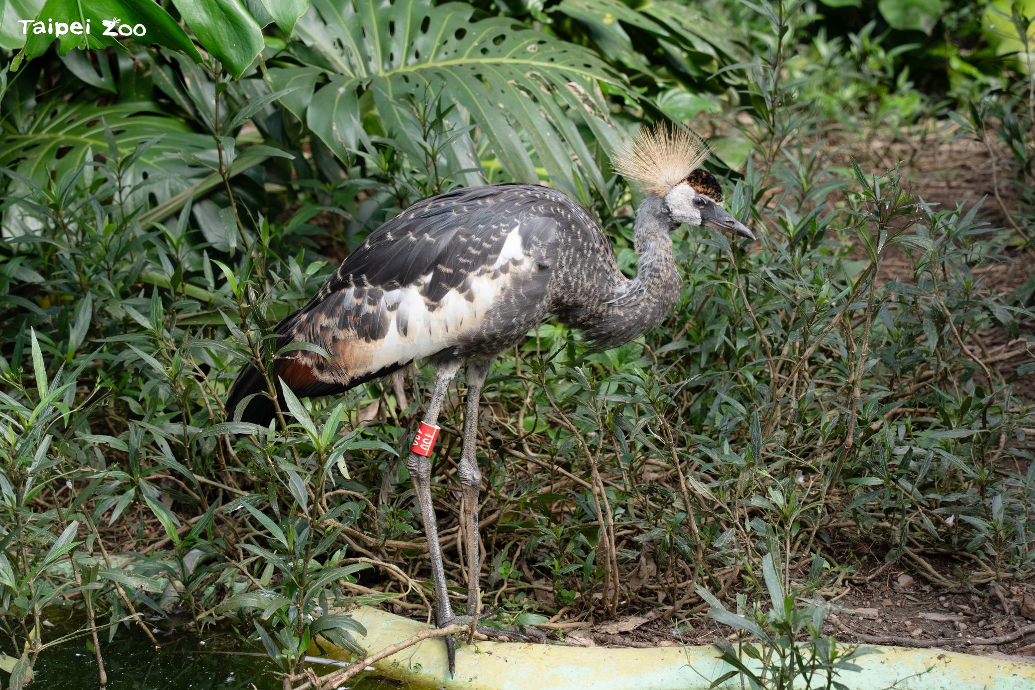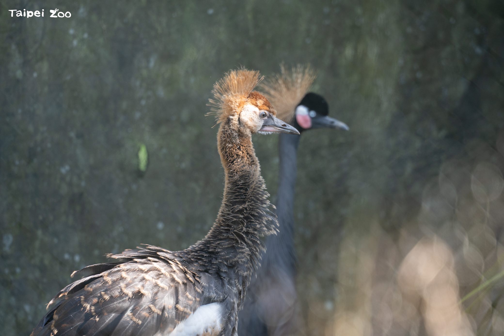 臺北市立動物園鳥園的水禽區,於今(2025)年7月下旬誕生了一隻灰頸冠鶴寶寶。因為水禽區的環境較為開放且複雜,為了提高灰頸冠鶴寶寶能順利成長的機會,保育員考量後決定將灰頸冠鶴寶寶交由「鶴園」裡的一對黑頸冠鶴養育。黑頸冠鶴們稱職地擔任灰頸冠鶴的代理爸媽角色照顧寶寶,當有人靠近時總會警覺地走到前方戒備,護子心切的行為表露無遺。小灰頸冠鶴在黑頸冠鶴爸媽的呵護下漸漸成長,目前正褪去乾草般褐色的絨毛,換上淺灰色的羽毛,額頭上的黑色羽毛也慢慢長出,像開花般的長出金黃色羽冠。只不過目前小灰頸冠鶴灰色的羽毛還夾雜斑駁的黃褐色,頭頂的羽冠也不像成鳥一樣「茂盛」。不過身形已長得較大的牠似乎已比較不在意遊客的視線,會好奇地到處探索啄食。想要一睹小灰頸冠鶴稚氣的模樣,要趁現在把握機會到鶴園一賞!