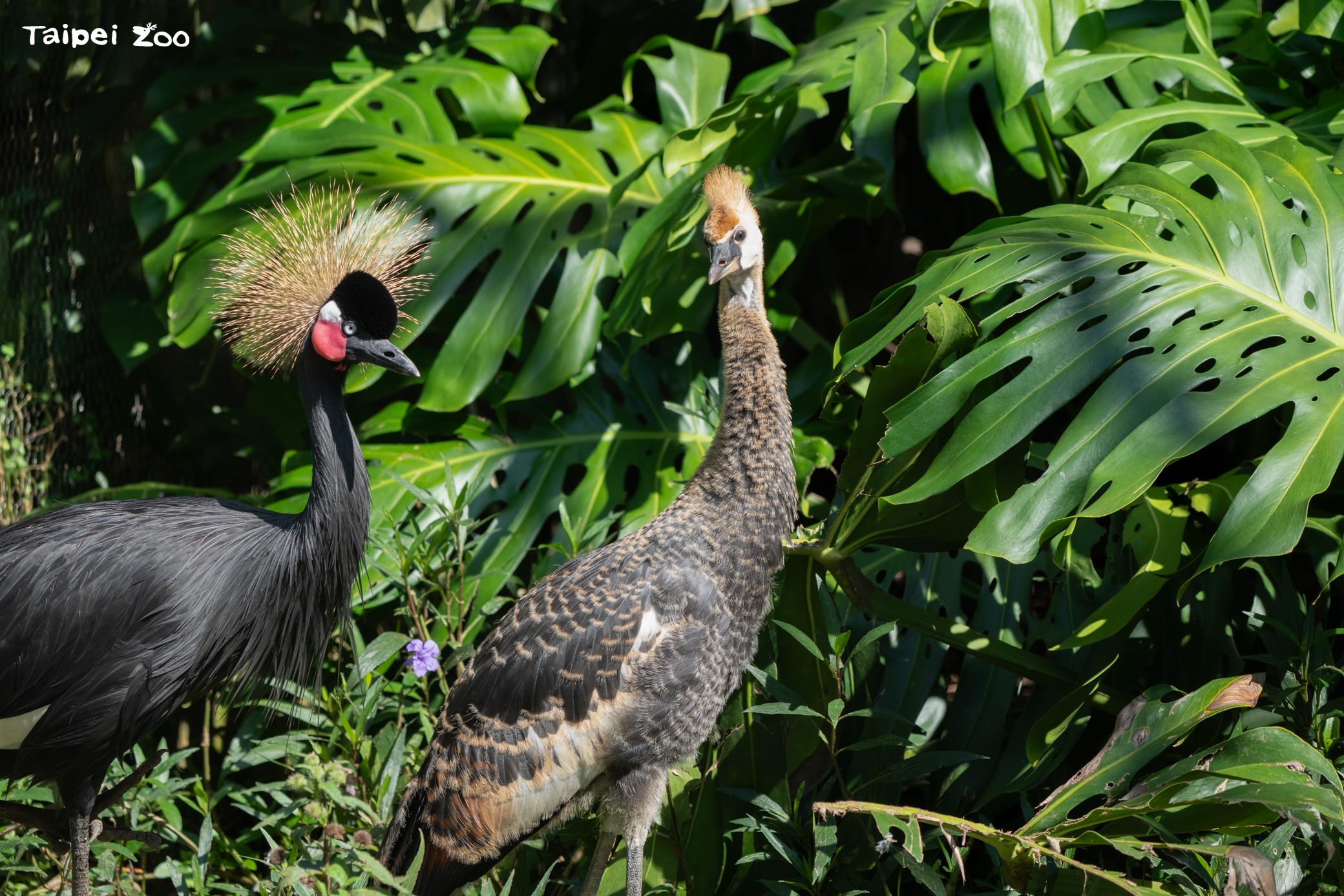 臺北市立動物園的「鶴園」(位於雉類區旁)最近出現一隻小灰頸冠鶴,仔細觀察會發現,和牠一起生活的其實是一對黑頸冠鶴!這對「黑」頸冠鶴擔任著小「灰」頸冠鶴的代理鳥爸爸、鳥媽媽,一起幫忙哺育灰頸冠鶴寶寶。現在的小灰頸冠鶴的身高已經直追爸爸媽媽的高度,外貌也跟剛出生時截然不同,開始逐漸換羽,長出顯眼的金黃色羽冠。黑灰冠鶴傻傻分不清楚嗎?歡迎來動物園的鶴園找找成長中的小灰頸冠鶴。賞鳥記得保持安靜,不出聲打擾,更有機會觀察到牠們的互動行為!