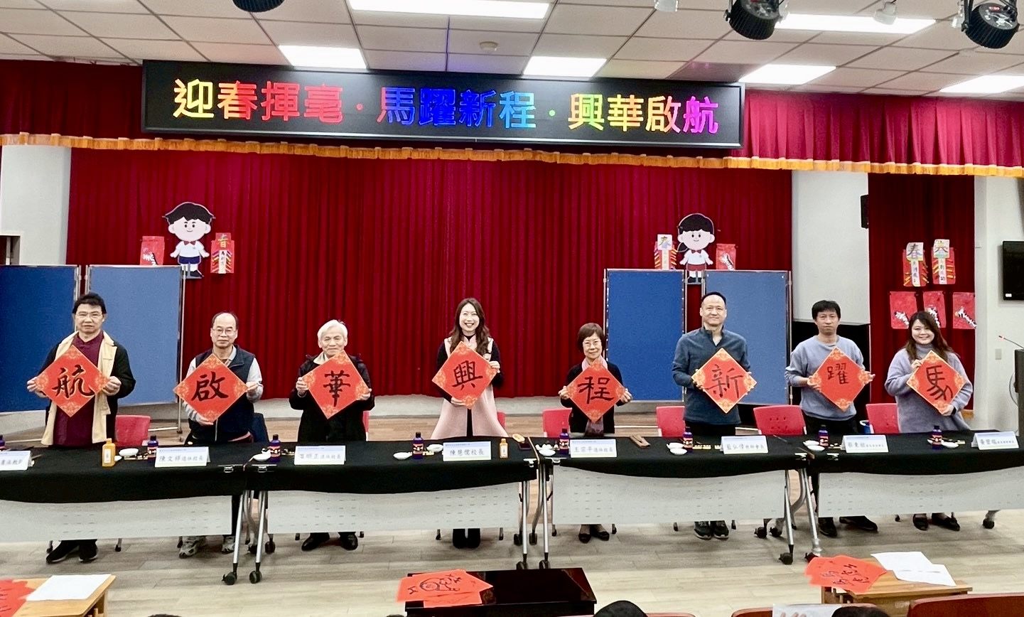 活動高潮由現任校長陳慧儒領軍,特別邀請創校校長溫明正、歷任校長 王宗平、陳文祥,以及家長會代表、教師會長、校內書法大師陳道帆共同擔任題字嘉賓,聯手揮毫題寫年度祝福語「馬躍新程・興華啟航」,眾人筆勢奔放、墨韻生動,寓意興華學子在新的一年勇敢向前、昂首啟航,師生近距離欣賞大師運筆神采,深刻感受書法藝術中力與美的結合,現場掌聲不斷,氣氛熱烈。