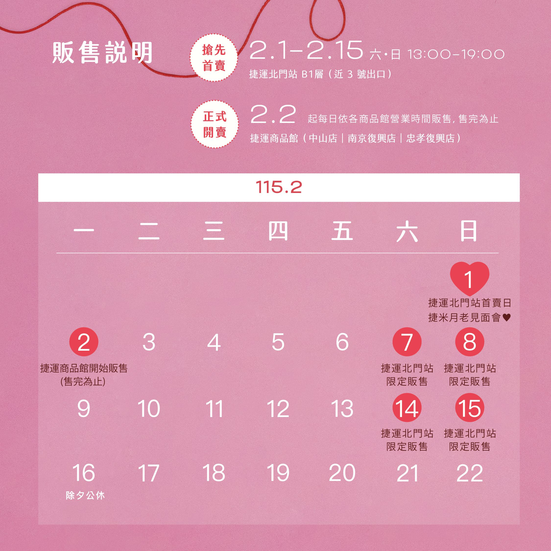 2月2日起,臺北捷運商品館中山店、南京復興店及忠孝復興店同步正式開賣。