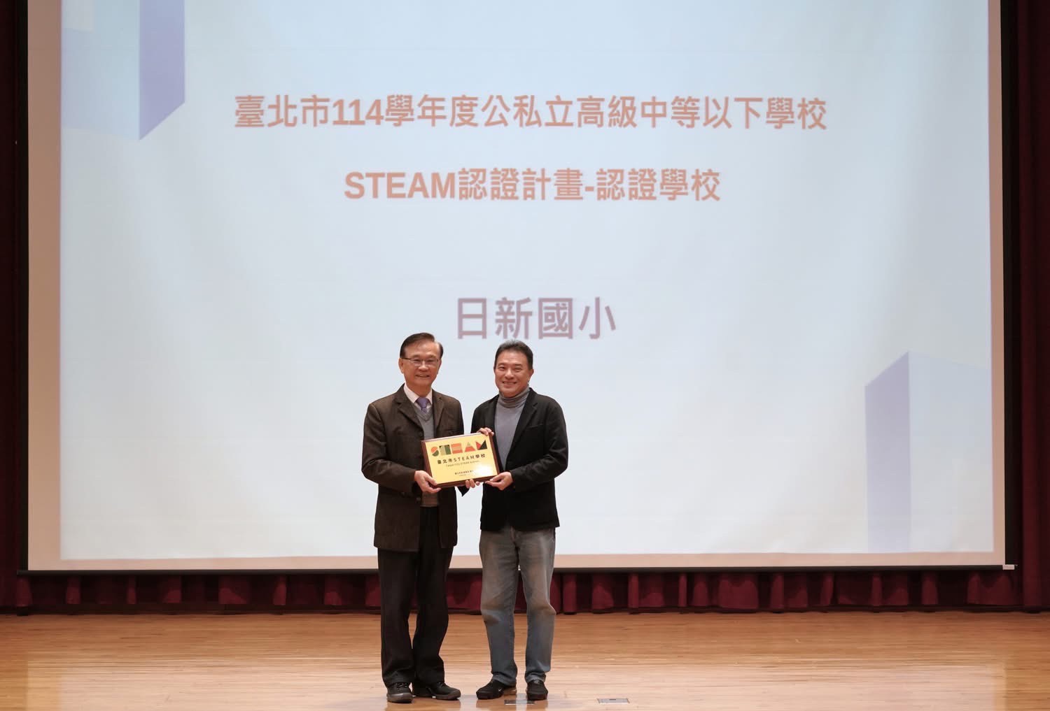 另教育局近日正式公告114學年度「STEAM學校認證」核定結果,並於臺北市114學年度第2學期「公私立國民小學校長會議」及「公私立中等學校校長會議」隆重頒發認證獎牌。本次認證成果斐然,「STEAM認證學校」由日新國民小學及仁愛國民中學獲獎,各校連續3學年總計可獲得160萬元補助,「STEAM預備學校」則由臺北市立大學附設實驗國民小學、長安國民小學、福德國民小學、西園國民小學、溪口國民小學、西湖國民小學、芳和實驗中學及民權國中獲獎,各校可獲得30萬元補助。