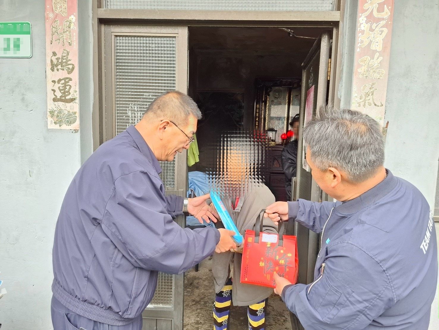 寒冬送暖好溫情!北投分局竹子湖派出所於今(115)年「加強重要節日安全維護工作」期間,由竹子湖派出所所長林嘉宏結合湖田里里長曹昌正共同前往轄內探視弱勢家庭、獨居長者及百年人瑞,展現警方關懷之意。里民從里長及所長手中接過關懷物資的福袋後頻頻稱謝並表示在寒冷天氣受到關懷,加倍感受到暖意揪甘心,警方及里長衷心期盼居民能夠有個溫馨及快樂的新年。