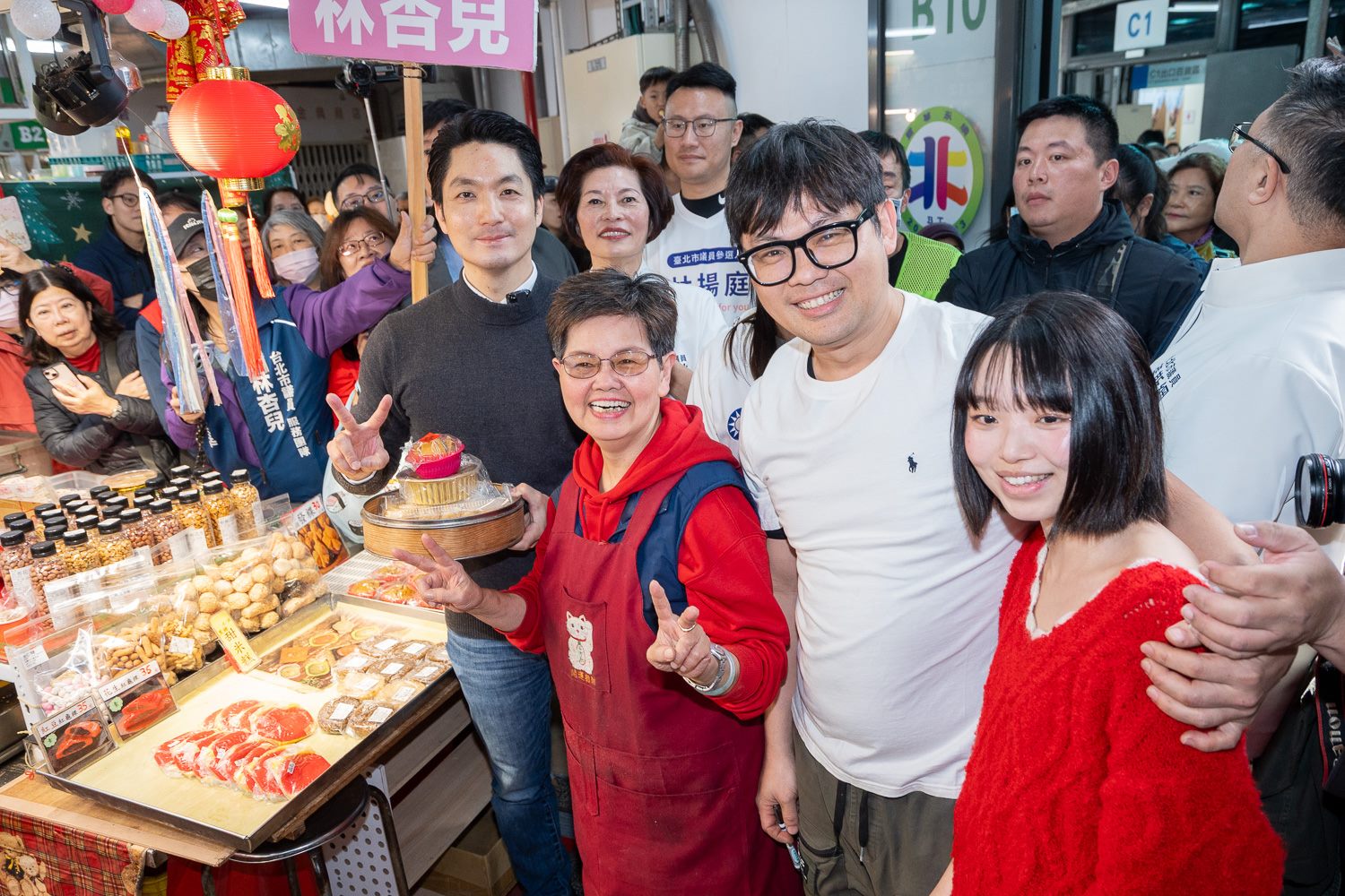 農曆春節將至,公有北投中繼市場的年節採買人氣逐漸熱絡,今(2/12)日蔣萬安市長也親至現場向攤商與民眾拜年發放發財金,並造訪北投齊雞及阿玉素食等名攤,透過多樣食材及食材對應的吉祥話,如果凍雞對應大吉(雞)大利、滷味對應福祿(滷)壽、糕點對應步步高(糕)升,祝賀攤商生意興隆、歡喜過好年,展現北投市場獨特且豐富的年節氛圍。