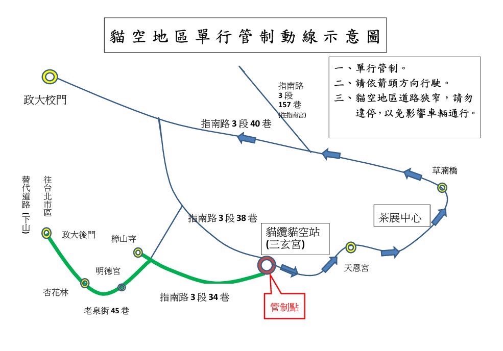 二、管制區域:指南路3段38巷(往鐵觀音包種茶推廣中心)下山方向。