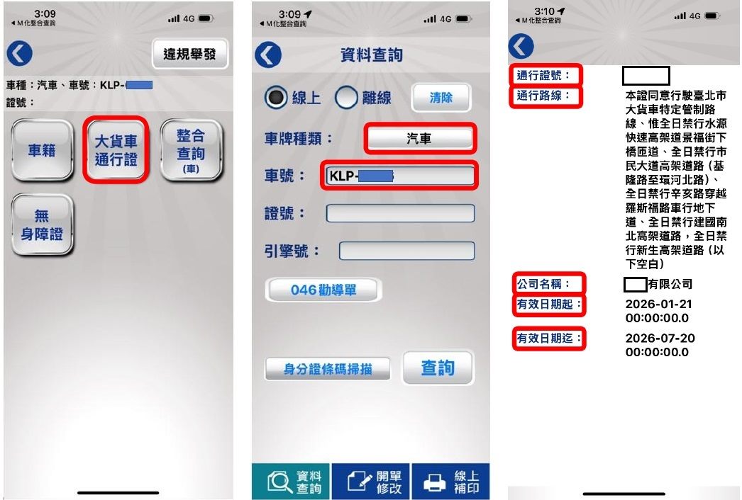 民眾駕駛大貨車(總重量逾10噸)及聯結車需申請通行證始得進入本市管制區,為提升民眾申請效率及便利性,臺北市政府警察局交通警察大隊自115年3月1日起,「臺北市大貨車及聯結車通行證申請」系統全面e化,民眾除能線上申請外,並可直接線上領取通行證,免去民眾往返領證或等候郵寄時間,讓民眾更快速申領通行證。 北市警交大透過優化「臺北市大貨車及聯結車通行證申請」系統,申請大貨車通行證案件經核准後,系統即自動將通行證檔案以電子郵件寄送申請人,有效縮短民眾領取時間及提升便利性;另該系統同時介接警政資訊平台,第一線執勤員警可即時線上查核,減少攔查大貨車安全風險,有效提升執法效率。 北市警交大呼籲,總重量逾10噸之大型車輛進入本市管制區,請事先至「臺北服務通」平台申辦通行證,民眾亦可至本大隊網站(http://td.police.gov.taipei)查詢及提出申請,並依核准之時間及路線行駛,以免違規受罰。