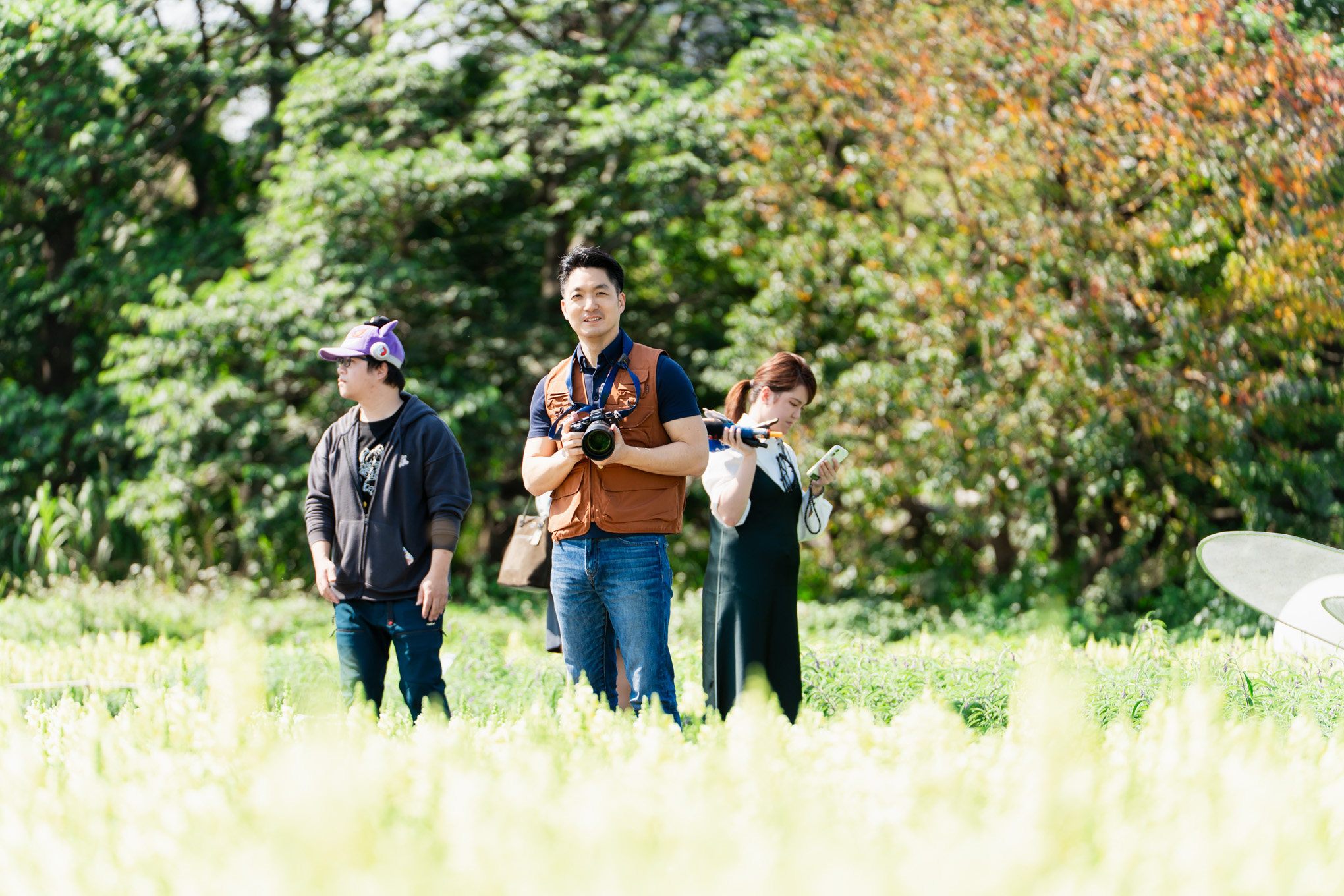 蔣萬安市長今日上午11時抵達古亭花海現場,換上攝影背心、手持專業單眼相機,神情專注地聆聽攝影師講解光圈、構圖與採光技巧。今日現身的Coser陣容堅強:以《葬送的芙莉蓮》芙莉蓮一角廣受粉絲喜愛的Genko玄子、詮釋《燕雲十六聲》曹敬觀音的Chihiro千尋,以及扮演同作休塔爾克的Tsun越尊等,皆以精緻服裝與專業肢體語言重現角色神韻。面對裝扮精緻的動漫角色,市長不僅親自調整拍攝角度,還與Coser討論動作、指揮走位,架式十足,讓現場專業攝影師大讚「市長是被市政耽誤的攝影師!」。