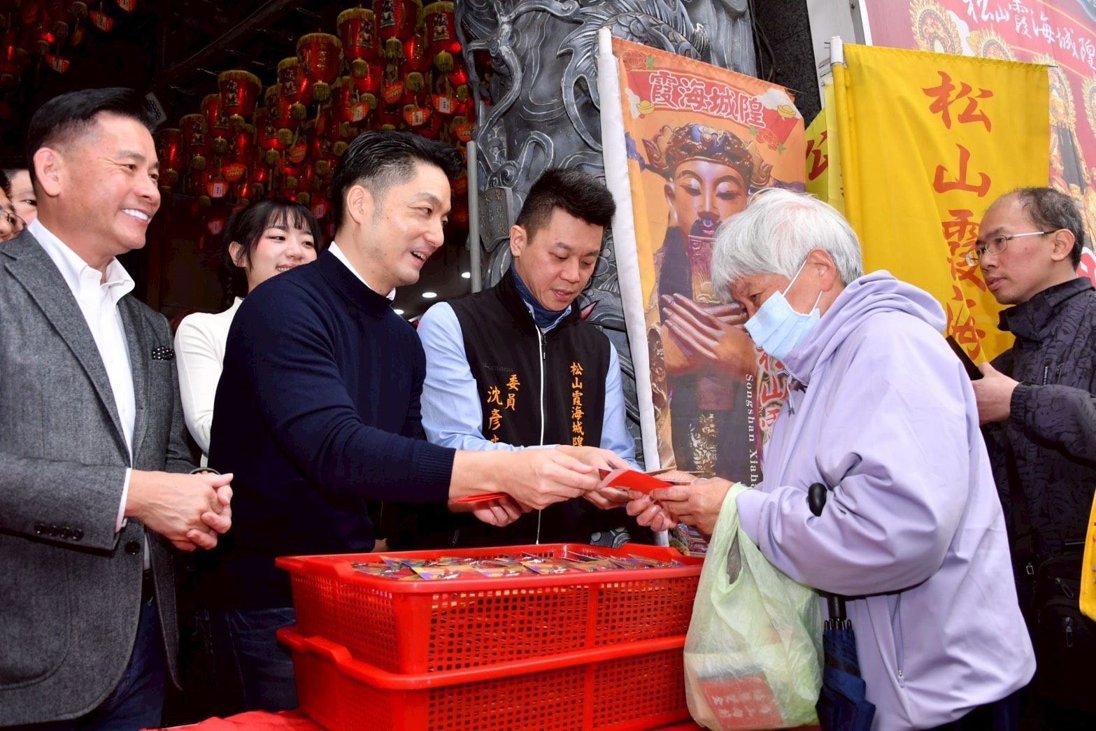 蔣萬安表示,感謝松山霞海城隍廟長期照顧地方,「冬令慈善」活動每年捐贈物資給3千戶清寒家庭;去年花蓮馬太鞍溪發生災情時,松山霞海城隍廟、臺北府城隍廟等城隍廟,第一時間捐贈5千個便當及超過1千臺50吋電視,協助災民快速重建、恢復正常生活,令人感動。
