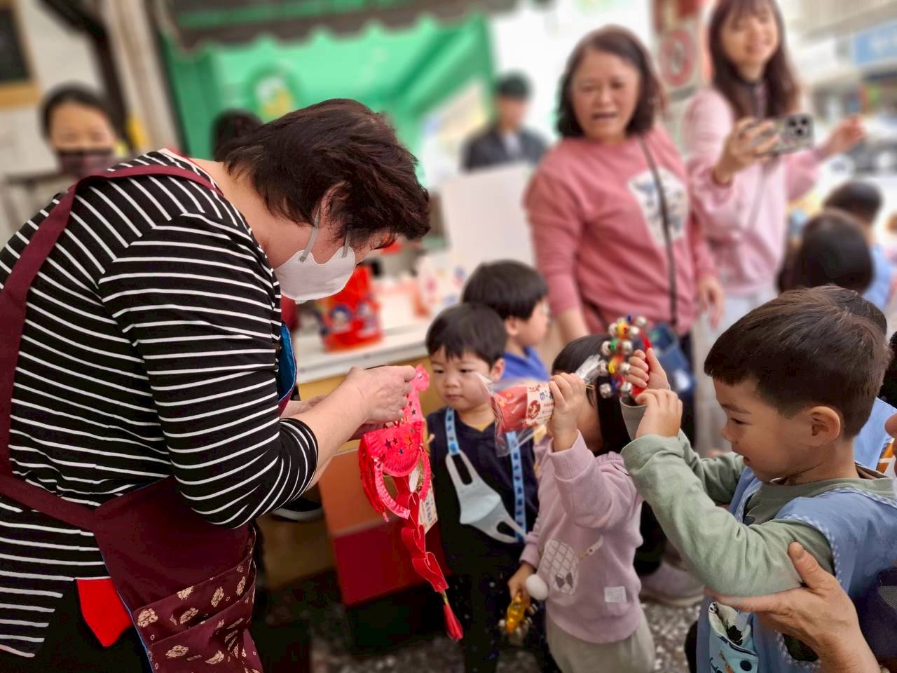 此外,幼兒園也安排敦親睦鄰活動,帶領孩子走入社區,向鄰里商家提前拜年。孩子們以響亮的聲音送上「新年快樂」與誠摯祝福,並感謝店家平日對學校與社區的支持與照顧。商家們亦紛紛回以鼓勵與祝福,現場氣氛溫馨熱絡,展現社區彼此關懷、互助合作的良好情誼。