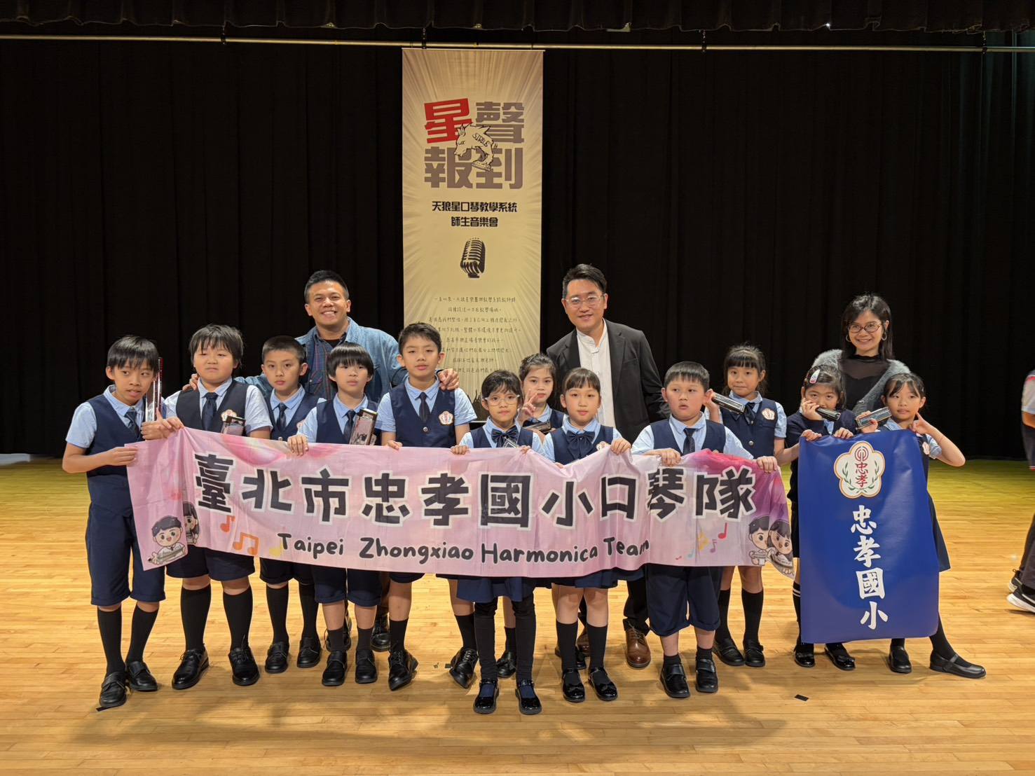 【臺北報導】星聲報到師生音樂會於臺北市政府青年局3樓演藝廳隆重登場。匯聚國小口琴校隊、重奏團體及學生個人獨奏,共同呈現一場層次豐富、情感飽滿的音樂盛會。當晚不僅展現學生長期耕耘的成果,更以音樂傳遞毅力與希望,讓現場師長與家長深受感動。