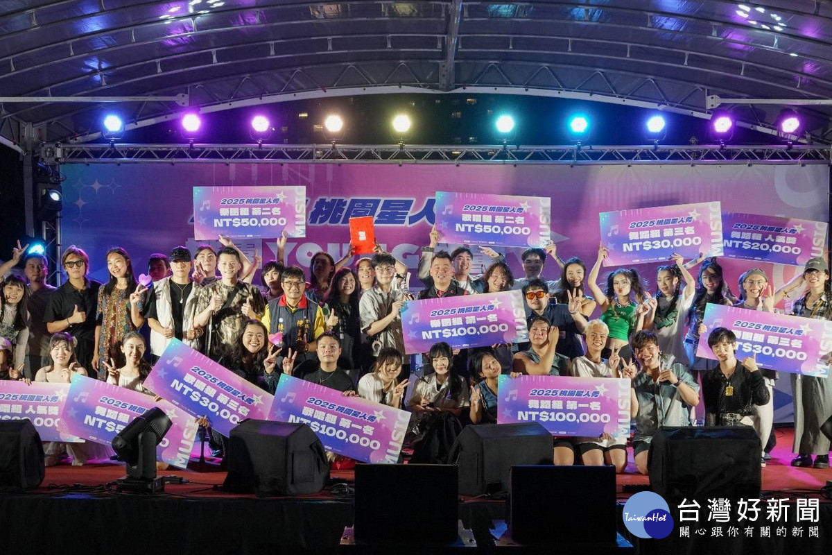 由桃園市政府青年事務局主辦的「2025桃園星人秀」,27日在桃園藝文廣場熱鬧落幕。今年活動吸引超過200組青年踴躍報名,經過多階段選拔,歌唱、樂團與舞蹈三大組別的八強選手齊聚舞台,以精采演出帶來一場視覺與聽覺的饗宴。