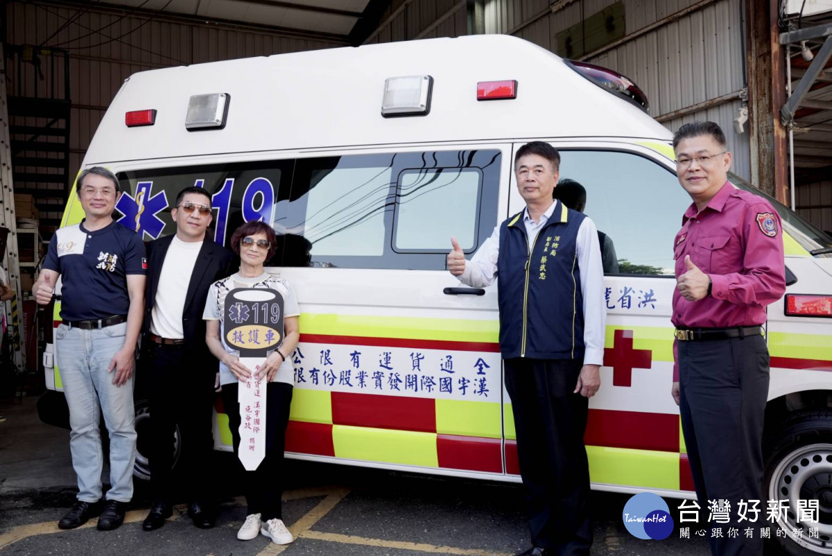 漢宇國際、全通貨運與洪省女士 捐新北第三大隊龍源分隊高頂救護車