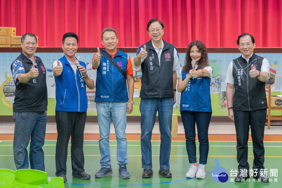 桃園市長張善政4日晚間前往大園區,出席「114年中秋慶團圓關懷弱勢暨防暴宣導活動」。張市長表示,菓林社區率先完成航空城安置,展現團結與發展成果,同時設立「愛心補給站」關懷弱勢,在歡慶佳節之際不忘公益,凝聚社區向心力,充分體現守望相助精神。