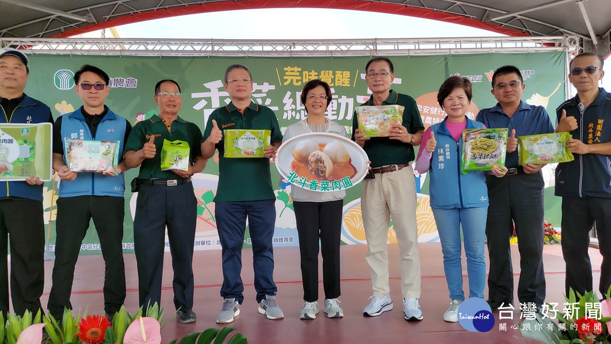 為推廣在地香菜(芫荽)農特產,北斗鎮農會4日在北斗奠安宮停車場舉辦「芫味覺醒、香菜總動芫 -產業文化活動」,現場有在地創意料理、家政班創意料理展示(售) 、米食及禽畜產品品嚐及親子DIY活動等,讓民眾享受在地美食及透過遊戲來推廣食農教育。今天同時也是北斗鎮農會新產品香菜肉圓上市發表會,彰化縣長王惠美應邀與北斗鎮農會理事長廖泳達、常務監事黃萬乙、總幹事陳瑩昇及與會貴賓一起見證這項創新,王縣長大力行銷北斗在地香菜產業,歡迎大家品嘗獨特風味。