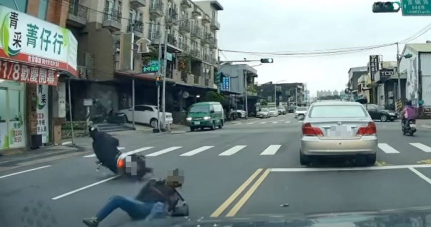 桃園3寶神級對撞!行人闖紅燈+機車逆向搶快 雙雙撞成1秒躺平