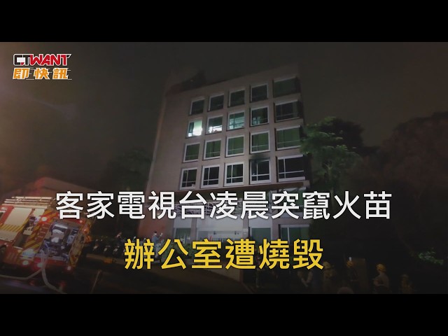 [周刊王CTWANT] 客家電視台驚傳起火!警消3日凌晨2時許獲報,康寧路三段上的客家電視台無故起火,該棟為地上7層樓地下3層樓建築物,於3樓起火,辦公室及攝影棚用途,警消也出動指揮車3輛、消防車12輛、救護車1輛、人員38人前往灌救,所幸火勢於凌晨3時38分許撲滅,並未釀成人員傷亡,燒損辦公桌及電腦,燃燒面積約10平方公尺,至於詳細起火原因仍有待進一步調查釐清。