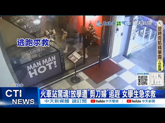 影/台中女高中生放學遭剪刀婦攻擊!良心店員護衛脫危
