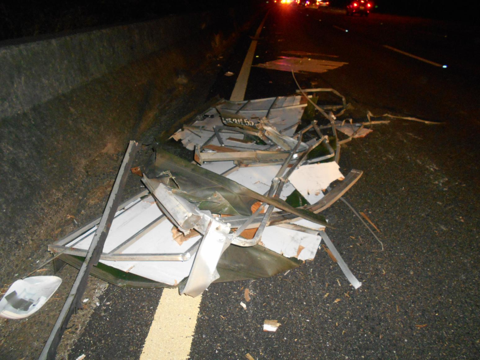 國道1號南向46.4公里處桃園路段15日晚間11時許發生多部車輛撞擊掉落物事故。警方調查發現,疑似小貨車後方的蓬架掉落在高速公路上,導致8部車輛輾壓後受損,目前正擴大調閱沿線監視器追查肇事車輛。