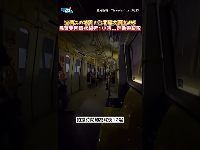 一名網友在社群平台上發文表示,晚間11時許發生地震,當時正在搭環狀線捷運,因此被卡在列車上,該名網友也說,是第一次遇到這種狀況。透過畫面可以看到當時車廂內也停電,沒有燈光,黑壓壓一片,還不時有其他光源閃爍,有網友留言,這畫面像是拍鬼片會出現的場景。