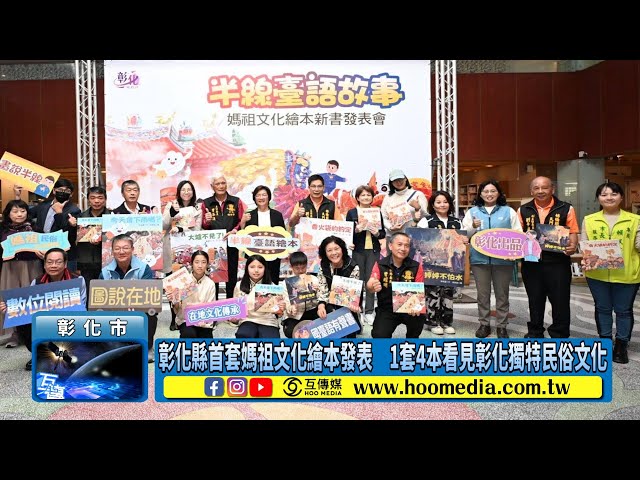 【互傳媒/記者 林明佑/彰化 報導】彰化縣文化局今(20)日在縣立圖書館辦理「半線臺語故事繪本新書發表記者會」,縣長王惠美、繪本作者、繪者及各宮廟主委等人與會。王惠美表示,為讓大眾更認識彰化的「媽祖故事」,特別邀請在地作家與著名插畫家共同創作,以彰化縣無形文化資產的媽祖民俗文化慶典為主題,出版4本精彩繪本。