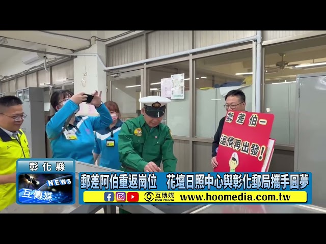 【互傳媒/記者 林明佑/彰化 報導】「大家都叫我郵差先生。」這是退休多年的李阿伯,穿上郵差制服後說的第一句話。花壇秀和苑日照中心日前和彰化郵局合作,安排「圓夢計畫」,讓退休超過25年的李阿伯回到以前的工作場所。老同事看到他都很開心,現場的氣氛溫暖又熟悉。