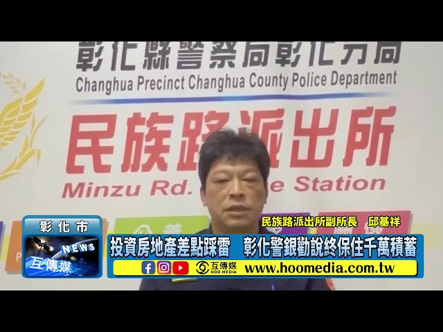 【互傳媒/記者 林明佑/彰化 報導】彰化市一名42歲楊姓女子昨(8)日上午前往銀行準備匯出高達新台幣1,000萬元,稱欲投資親友介紹的房地產,行員機警察覺有異通報警方,經員警到場查證,發現全程僅憑口頭約定、無任何投資文件,研判為假房地產投資詐騙手法,在警方與行員耐心勸說下,女子及時打消匯款念頭,成功守住鉅額積蓄。
