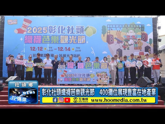 【互傳媒/記者 林明佑/彰化 報導】2025彰化社頭織襪芭樂觀光節暨社頭農遊季今(13)日上午於社頭果菜市場盛大開幕,12月12至14日在活動現場有全國最大的織襪精品、農特產品展售、地方小吃、演唱會及煙火秀等精彩活動,還有芭樂創意料理免費品嚐、摸彩、打卡送好禮、發票換襪子、織足藏樂館促銷等好康活動,彰化縣長王惠美、社頭鄉長蕭浚二邀請全國鄉親安排假期暢遊社頭,購買社頭優質芭樂及好襪。