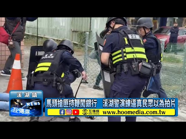 影/馬頭搶匪持鞭闖銀行 溪湖警演練逼真民眾以為拍片