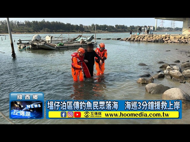 【互傳媒/記者 林明佑/彰化 報導】海巡署中部分署第三岸巡隊塭仔安檢所昨(20)日14時許,接獲海巡署第四巡防區指揮部通報,指稱塭仔泊區有民眾落海待援,立即派遣人員趕赴現場救援,利用拋繩袋與魚雷浮標在3分鐘內成功將人救起。落海民眾意識清楚、僅手腳擦挫傷,經初步處置後,由民眾友人送往彰濱秀傳紀念醫院治療。