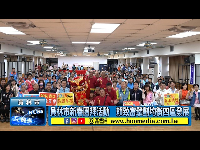 【互傳媒/記者 林明佑/彰化 報導】員林巿公所於今 (24) 日上午在員林市公所三樓禮堂辦理「115年丙午馬年吉祥賀新春」新春團拜活動,在員林市代理市長賴致富、彰化縣政府秘書游筑凱、賴沛然、縣議員凃俊任、曹嘉豪、劉惠娟、張錦昆,員林市民代表會主席張國良暨全體市民代表,協同各里長與各與會嘉賓共同揭開新春序幕。
