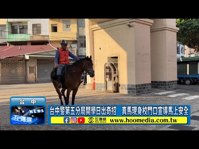 影/台中警第五分局開學日出奇招 真馬現身校門口宣導馬上安全
