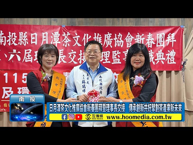 【互傳媒/記者 蘇彩娥/南投 報導】南投茶界年度盛事登場!日月潭茶文化推廣協會於26日在魚池鄉日月潭經典大飯店-范特奇堡盛大舉辦115年新春團拜暨第五、六屆第一次會員大會,同時舉行理事長交接就職典禮。來自南投縣各鄉鎮市茶會代表與會員齊聚一堂,共襄盛舉,在茶香縈繞與溫馨祝福聲中,完成薪火相傳的重要時刻。