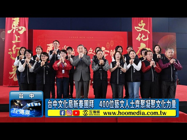 【互傳媒/記者 張玉泰/台中 報導】開春之際,台中展現強大的文化動能!台中市政府文化局今(1)日下午於市政大樓集會堂舉辦「2026台中市藝文界新春團拜」。以年度主題「馬上迎春 文化奔騰」,邀集視覺藝術、表演藝術、文學、設計與文化資產等領域逾400位藝術家、專家學者齊聚交流,展現台中文化量能全面啟動、創意動力持續發展的城市風景。