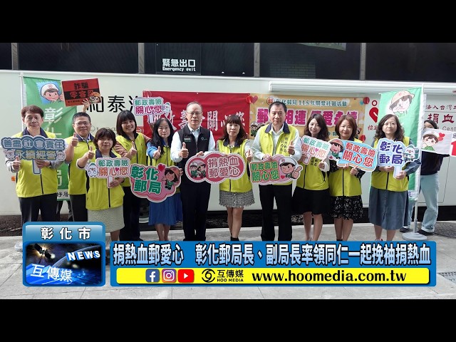 【互傳媒/記者 林明佑/彰化 報導】中華郵政公司自民國92年起持續辦理全國性捐血活動,至今已募集超過65萬袋熱血,為社會注入源源不絕的愛心暖流,深獲各界肯定。為鼓勵民眾踴躍挽袖捐血,彰化郵局今(6)日在中央路郵局舉辦「捐熱血.郵愛心」郵政壽險捐血月活動,由彰化郵局局長郭白慧、副局長賴正造率領同仁率先挽袖捐血,以實際行動響應公益。活動並結合各公益慈善團體,提供精美贈品鼓勵民眾踴躍參與,一同捐熱血、做公益。