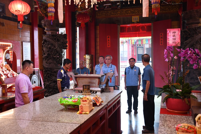 ▲金門縣消防局在浯島城隍廟前與主委、總幹事合影留念。