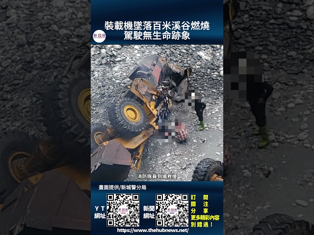 影音/裝載機墜落百米溪谷燃燒 駕駛無生命跡象