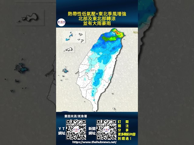 影音/熱帶性低氣壓+東北季風增強 北部及東北部轉涼並有大雨豪雨
