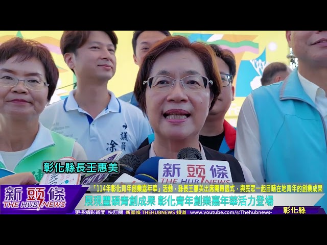 為推廣青年創業輔導成果,建立青創交流平台與展銷機會,彰化縣政府於11月29、30日在彰化縣圓林園舉辦為期兩天的「114年彰化青年創業嘉年華」活動,縣長王惠美出席開幕儀式,與民眾一起目睹在地青年的創業成果。王縣長表示,縣府為協助青年留鄉、返鄉,每年編列1,000萬元的經費,提供最高30萬元的創業圓夢補助,目前已補助136位青年自己創業做頭家。也建立輔導創業機制,提供一年最多5次的專業服務,協助青年處理實體店面,或電商領域的規劃等等各方面問題。