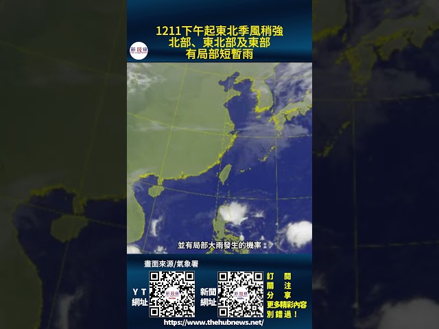 影音/1211下午起東北季風稍強 北部、東北部及東部有局部短暫雨