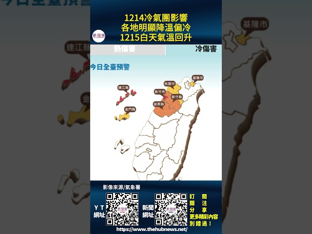 影音/1214冷氣團影響 各地明顯降溫偏冷 1215白天氣溫回升