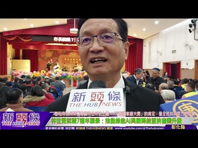 彰化市公所15日舉辦市長林世賢就職7週年典禮!林世賢市長在典禮上感恩說,市公所在同仁團結打拚與市民代表會全力支持之下,榮獲鄉鎮市公所史上唯一「7個國家級大獎」的肯定,不僅反映建設成果,也象徵公務體系行政效率與政治文化的正向轉變。