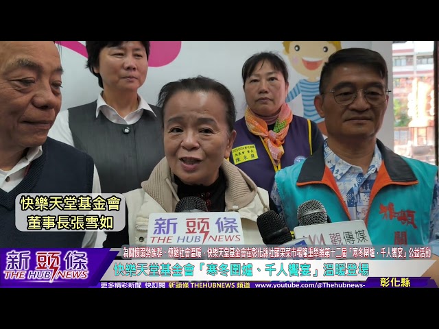 為關懷弱勢族群、傳遞社會溫暖,快樂天堂基金會於民國今年1月25日,在彰化縣社頭果菜市場隆重舉辦第十二屆「寒冬圍爐,千人饗宴」公益活動,邀請彰化縣低收入戶、貧困獨居老人、街友及邊緣戶,社會機構共襄盛舉,預計現場席開300桌,招待約3,000位弱勢朋友,一同圍爐迎新年。