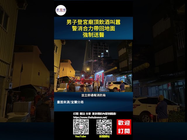 影音/男子登宮廟頂飲酒叫囂 警消帶回地面強制送醫
