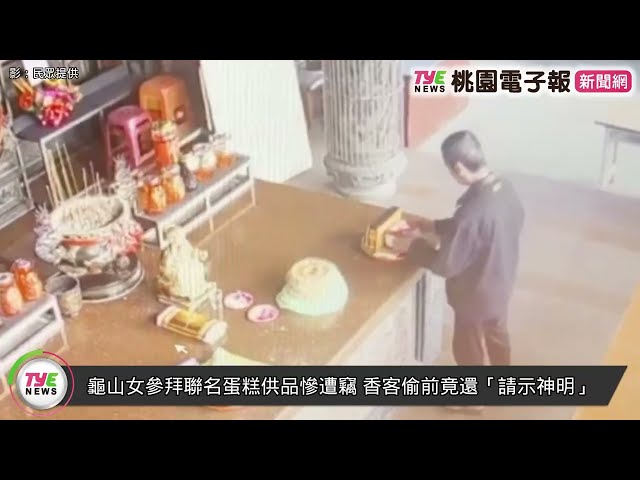 本文章來自《桃園電子報》。原文:【有片】龜山女參拜聯名蛋糕供品慘遭竊 香客偷前竟還「請示神明」