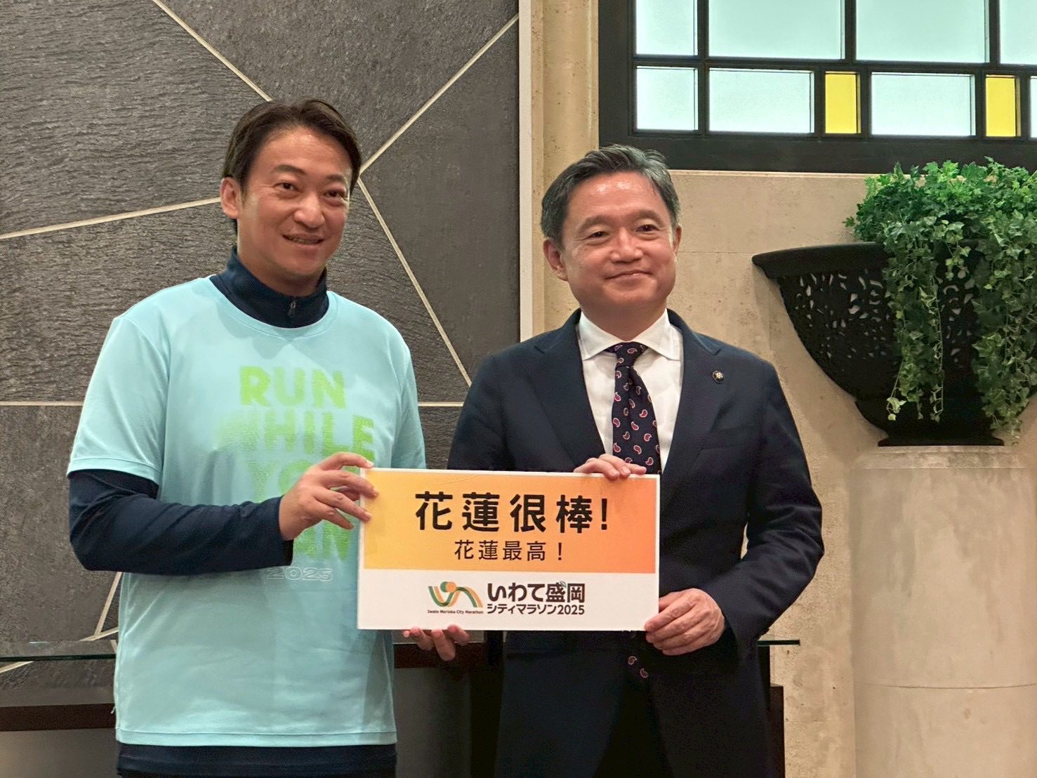 訪問期間,魏嘉賢一行人也身著2025花蓮太平洋縱谷馬拉松的紀念T恤,參加「盛岡城市馬拉松2025」,以實際行動促進城市體育與觀光交流。
