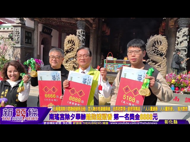 「人人攏頭香、人人攏好運」!彰化南瑤宮今年在重修入火安座後恢復後,盛大舉辦除夕路跑迎頭香活動,於2月16日晚間從旭光西路起跑,沿南瑤路直行至南瑤宮廟門前,全程約700公尺。比賽分男子組、女子組,前三名獎金分別為8888元、6666元、5168 元,另設最佳造型獎,取前 5 名各發給獎金 2000 元。另外,只要參加者每人都可領香火袋保平安。