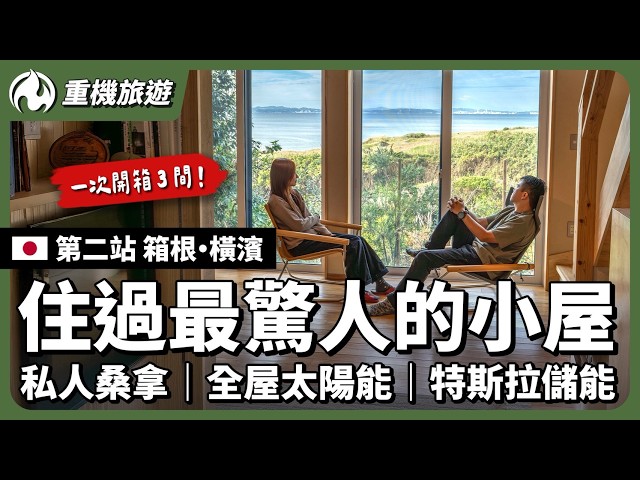 這次到箱根的露營區體驗營區小屋,居然是兩間三人床上下舖設計,但是搭配大客廳大廚房的配置,根本就是聚會小屋,從箱根前往橫濱就碰到這次最差的天氣,兩個小時的高速公路加上低溫跟下雨,好險這次衣服裝備都夠,沒有冷跟濕到,接下來前往千葉海邊的自給自足小屋,這小屋用Tesla的儲能系統,太陽能,雨水收集,Starlink網路,還有自己的三溫暖,面對東京灣,遠眺夕陽富士山,沒來海邊小屋可以這們科技跟舒適!
