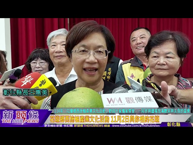 花壇鄉公所今(23)日上午在花壇鄉藝文館舉辦114年「花壇鄉西施柚產業文化活動」記者會,彰化縣長王惠美、花壇鄉長顧勝敏、鄉民代表會主席沈文盛、花壇鄉農會總幹事顧碧琪等人與會,共同邀請大家11月2日至花壇鄉公所前廣場參與一系列有吃、有看、有玩的精采活動,活動內容豐富多元,歡迎大家攜家帶眷,一同參與這場充滿歡笑與美食的盛會。