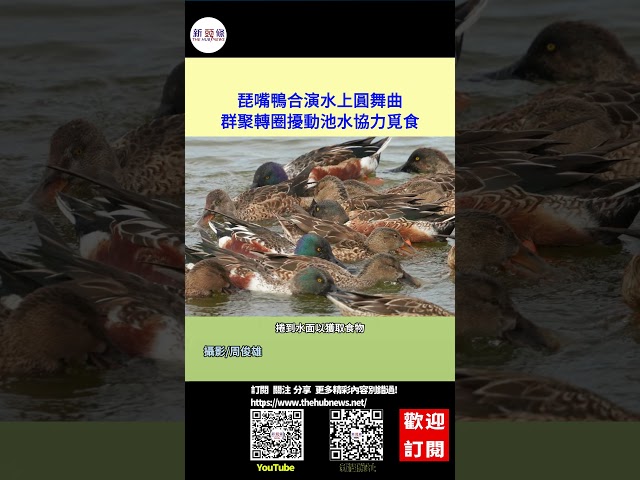 這裡有鳥事/影音/鰲鼓溼地琵嘴鴨合演水上圓舞曲 群聚轉圈擾動池水協力覓食